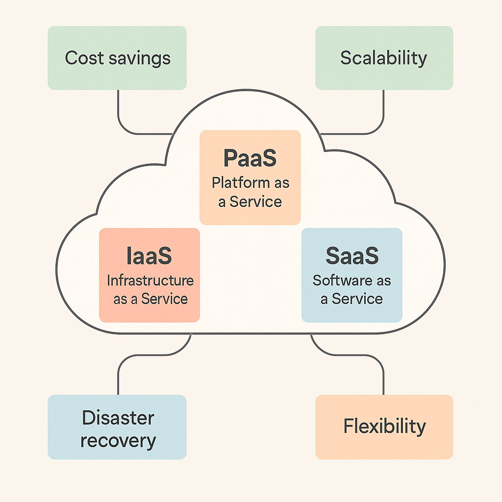 – Infrastructure as a Service (IaaS): Provides virtualized computing resources over the Internet.