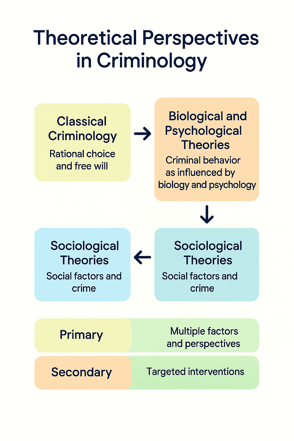 5. Control Theories: Control theorists, like Travis Hirschi, ask why people do not commit crime. Hirschi’s social bond theory contends that strong social bonds to family, school, and other institutions reduce the likelihood of criminal behaviour. People conform because of an investment in conventional activities and a fear of jeopardising their social relationships.